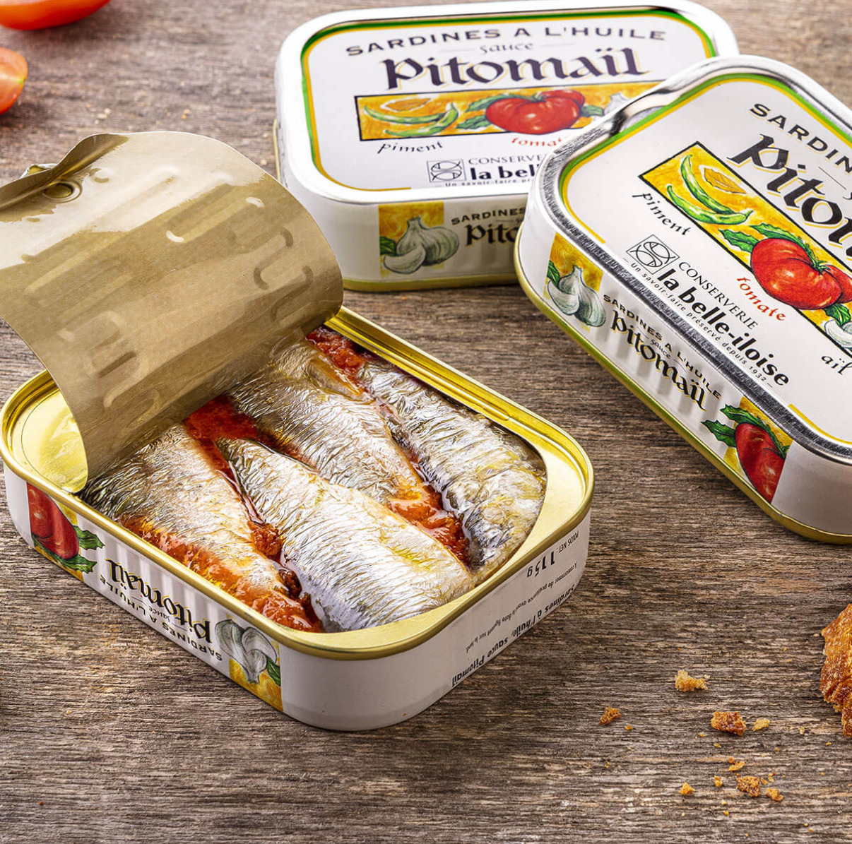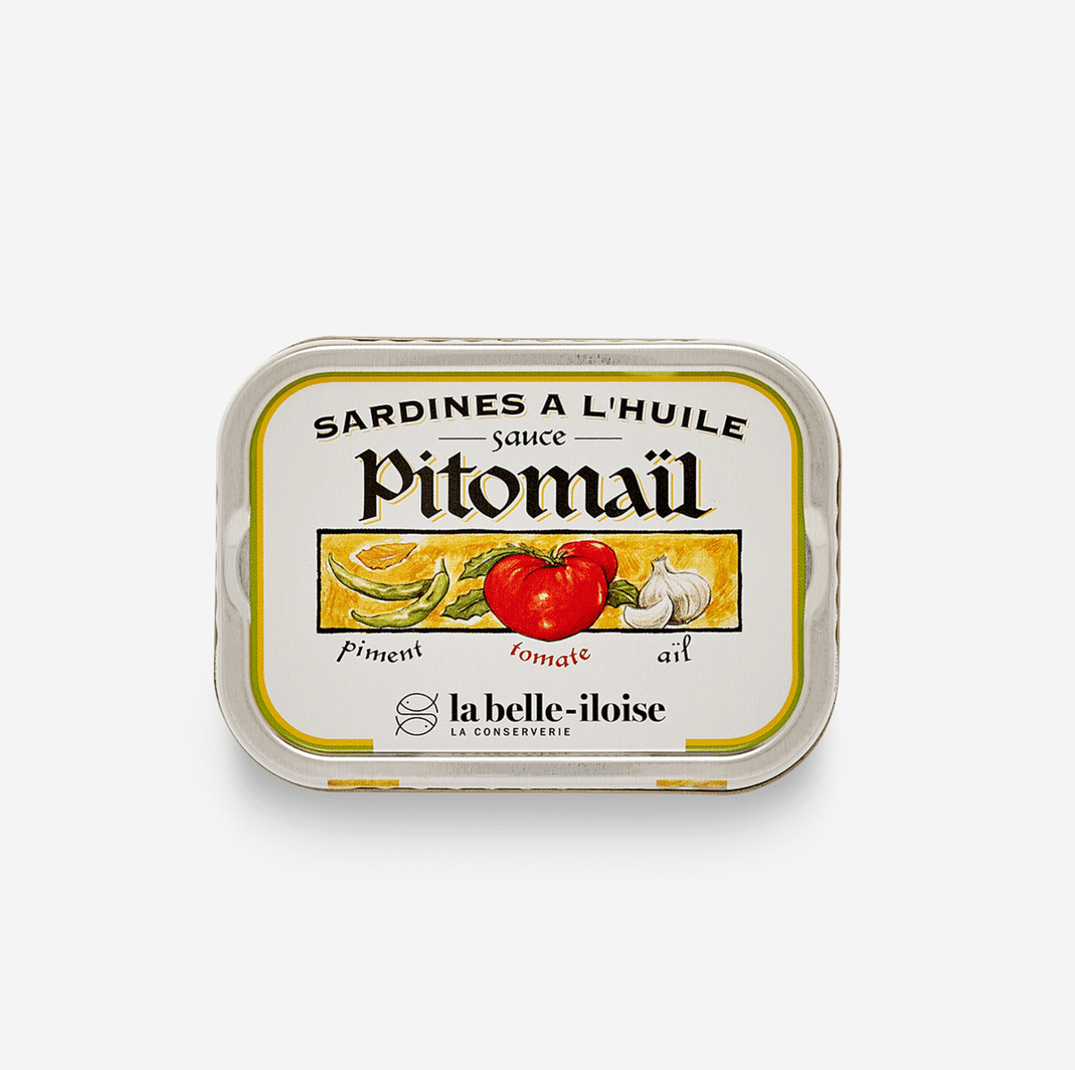 Le créateur de la Conserverie, Georges Hilliet, avait pris l’habitude de préparer une version plus relevée de ses Sardines à la tomate pour sa réserve personnelle. Ses amis l’incitèrent à ajouter cette nouvelle recette de sardines au catalogue dans les années 60... Et Pitomaïl est devenue un best-seller de la belle-iloise !