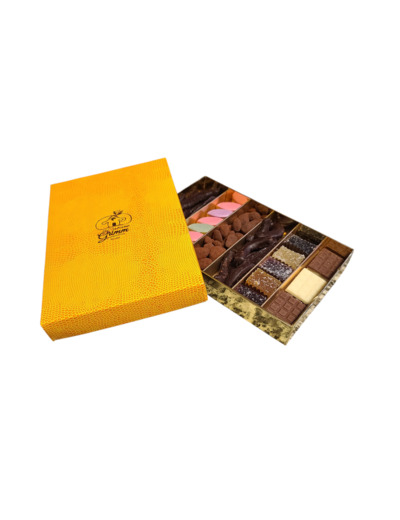 Le coffret découverte rassemble une sélection de produits à partager. Vous pouvez y retrouver des fruits confits enrobés de chocolat, des séguinettes (fruits secs enrobés de chocolat et poudre de cacao), des mini calissons fruités, des mini tablettes de chocolat variées et des pâtes de fruits.