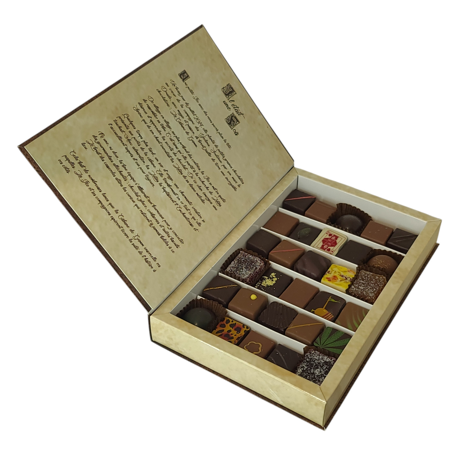 Assortiment de 30 chocolats fourrés en coffret de luxe. Ce coffret contient un assortiment de ganaches, pralinés, caramels fondants, pâtes d'amande et de fruits, truffes et guimauves enrobées de chocolat. Cliquez ici pour découvrir l'ensemble de notre gamme de chocolats. Modes de livraison disponibles :
