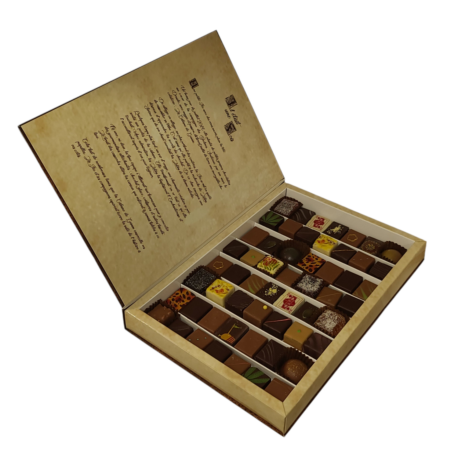 Assortiment de 56 chocolats fourrés en coffret de luxe fabriqué en France. Ce coffret contient un assortiment de ganaches, pralinés, caramels fondants, pâtes d'amande et de fruits, truffes et guimauves enrobées de chocolat. Cliquez ici pour découvrir l'ensemble de notre gamme de chocolats. Modes de livraison disponibles :