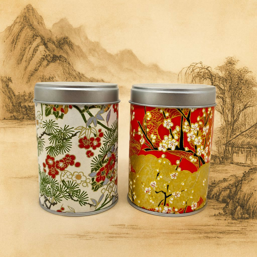 2 boîtes en métal recouvertes de papier japonais, double couvercle contenant :