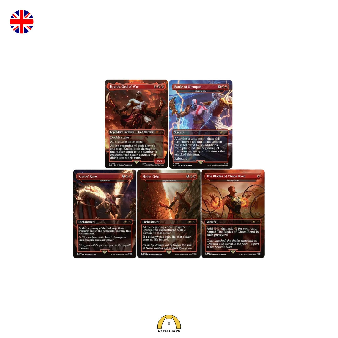 Contenu: 1x Kratos, God of War 1x World at War as "Battle of Olympus" 1x Rite of Flame as "The Blades of Chaos Bond" 1x Sulfuric Votex as "Hades Grip" 1x Pyrohemia as "Kratos' Rage"