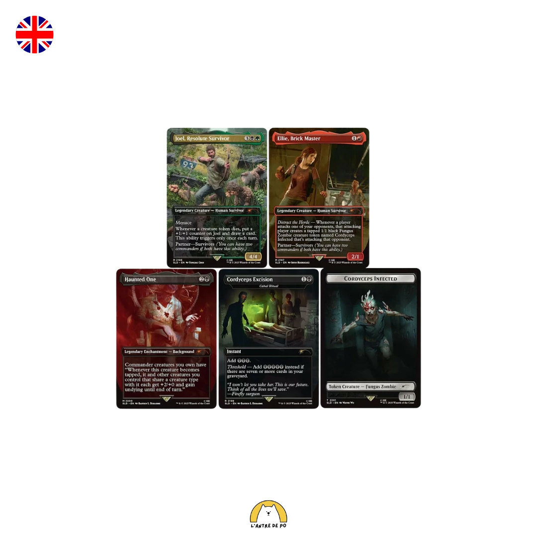 Contenu: 1x Ellie, Brick Master 1x Joel, Resolute Survivor 1x Cabal Ritual as "Cordyceps Excision" 1x Haunted One 1x Cordyceps Infected token
