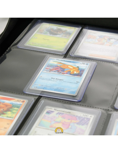 Grande capacité de rangement : 20 pages comprenant chacune 9 pochettes à ouverture latérale, permettant de protéger jusqu’à 360 cartes dans leurs toploaders.