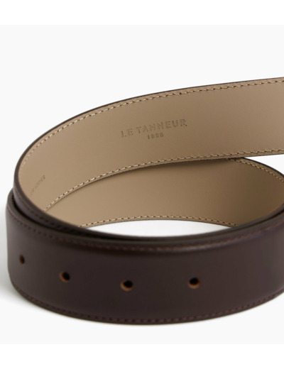 Ceinture 35 MM non réversible avec logo embossé ton sur ton intérieur. Éléments métalliques finition argent.