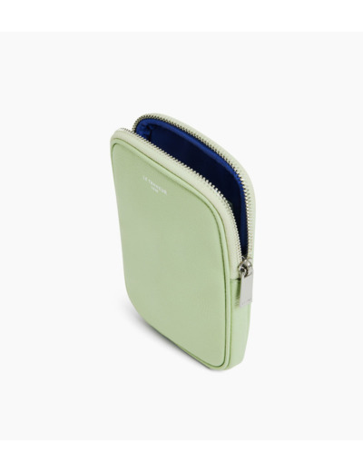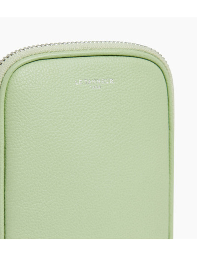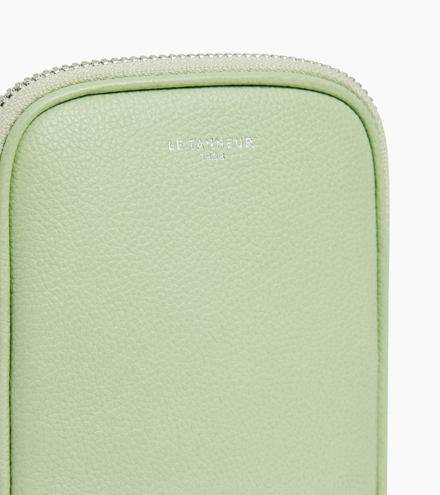 Étui téléphone zippé avec marquage Le Tanneur et zip finition argent. Porté épaule ou croisé grâce à sa bandoulière ajustable. Sécurité antiRFID.