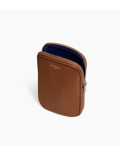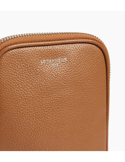 Étui téléphone zippé avec marquage Le Tanneur et zip finition argent. Porté épaule ou croisé grâce à sa bandoulière ajustable. Sécurité anti-RFID.
