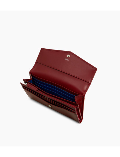 En plus de ses lignes saillantes, son cuir de couleur vive et son intérieur à la fois graphique et moderne. Ce compagnon zippé intègre un porte-cartes amovible.