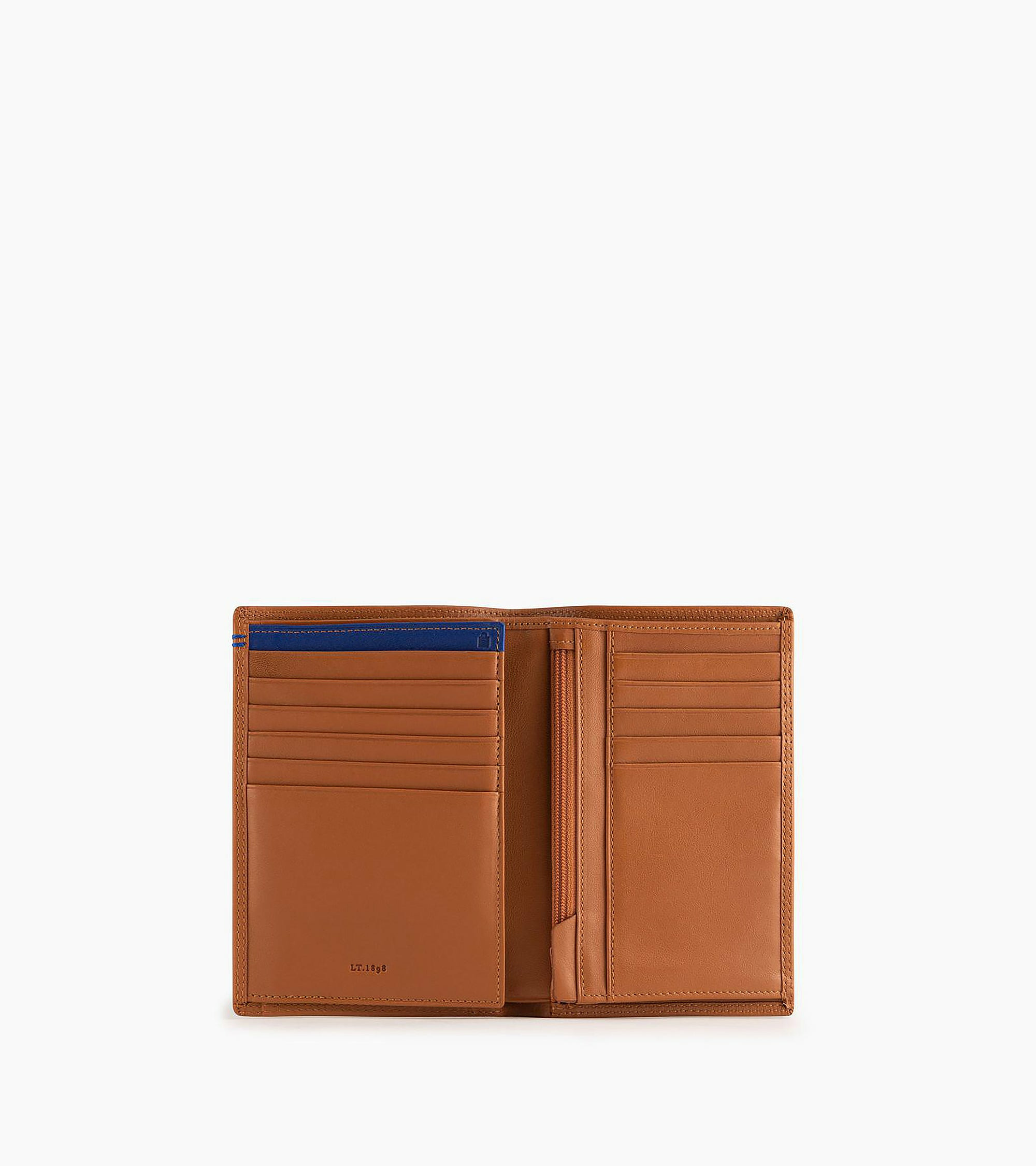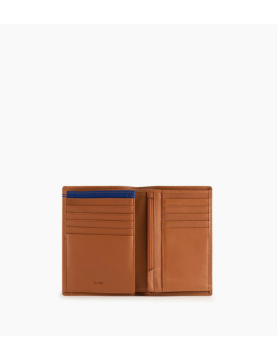 Ce portefeuille grand format vertical arbore un discret marquage Le Tanneur couleur Le Bleu, ainsi qu’un double point du même contraste cousu à la main.