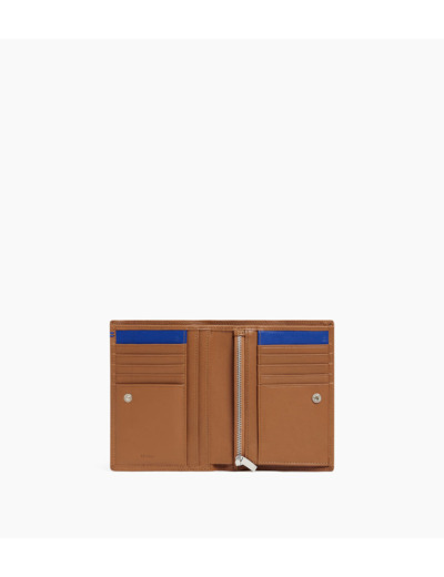 Grand portefeuille vertical deux volets avec marquage Le Tanneur, fermoir pression et poche monnaie zippés finition argent. Intérieur et points bleu signature. Sécurité anti-RFID.