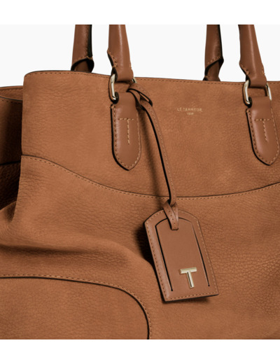 Sac à main grand modèle poignées signature et charms porte-étiquette amovible. Marquage Le Tanneur et éléments métalliques finition doré clair. Porté main, épaule ou croisé grâce à sa bandoulière ajustable et amovible.