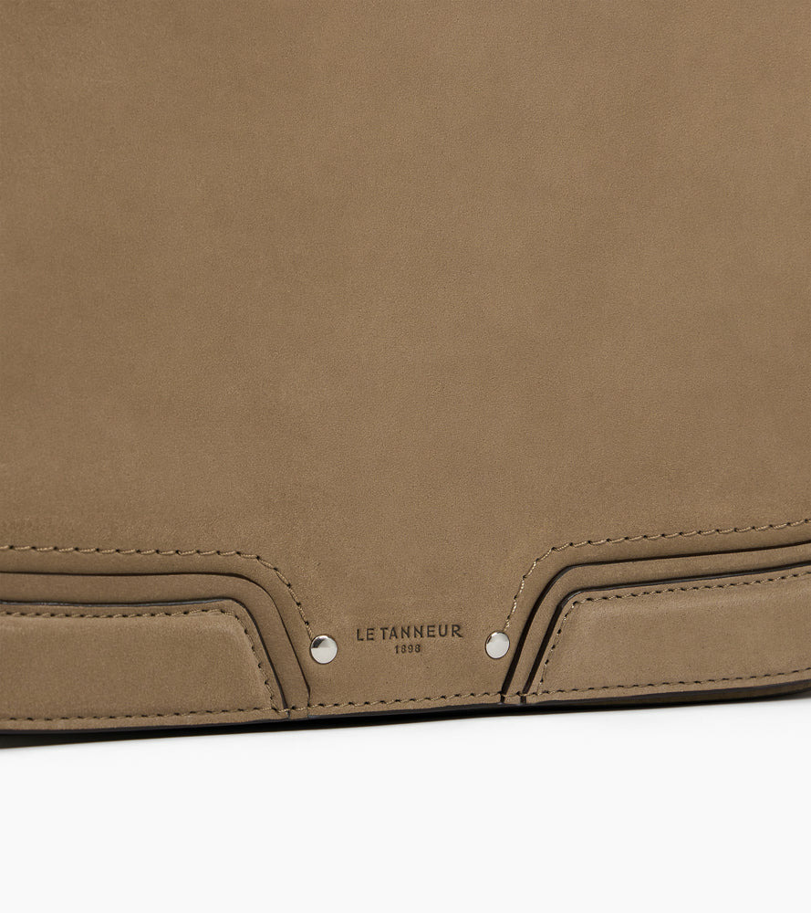 Grand sac bandoulière en cuir lisse et nubuck avec marquage Le Tanneur et doublure 100% coton. Porté main, croisé ou épaule grâce à sa bandoulière ajustable et sa poignée amovible ajustée au corps du sac.