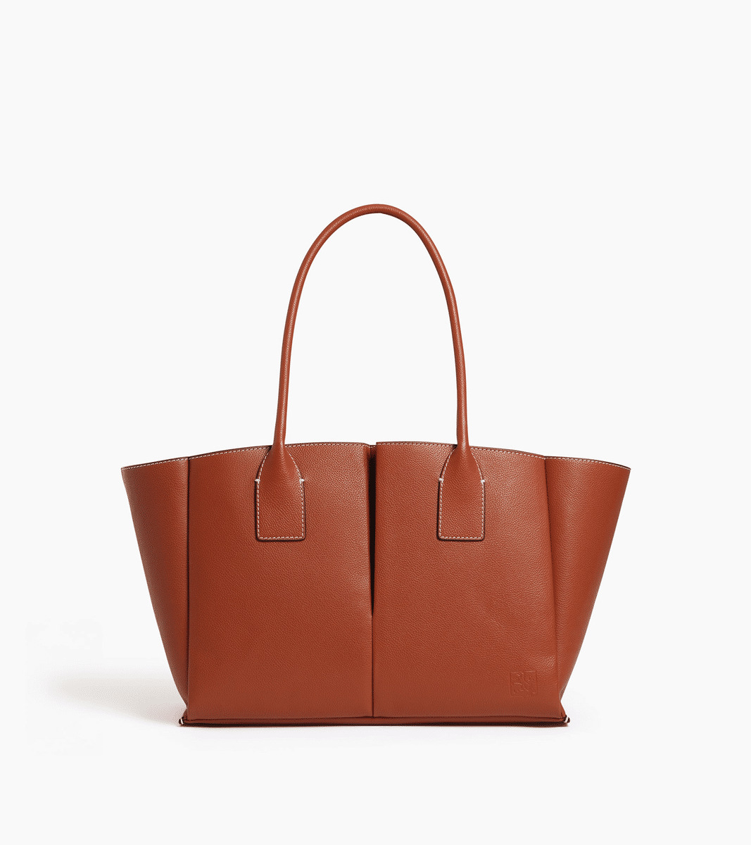 Grand sac cabas avec pochette amovible, miroir de courtoisie et marquage Le Tanneur ton sur ton. Doublure suède en microfibre. Porté main ou épaule. Peut contenir un ordinateur 14".