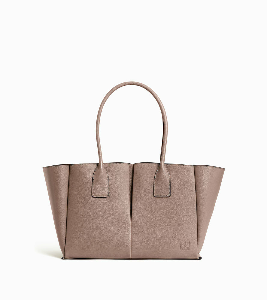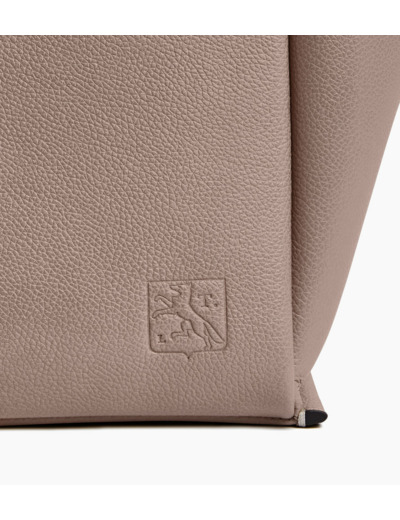 Grand sac cabas avec pochette amovible, miroir de courtoisie et marquage Le Tanneur ton sur ton. Doublure suède en microfibre. Porté main ou épaule.