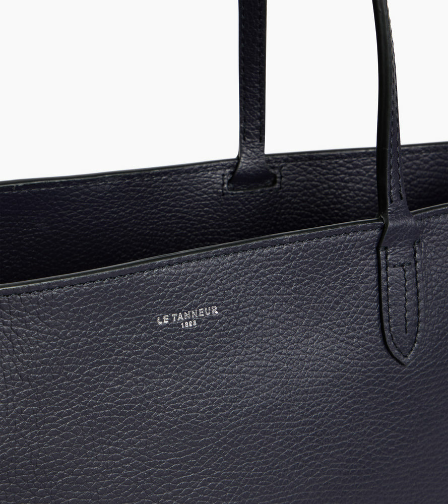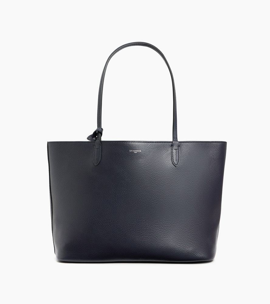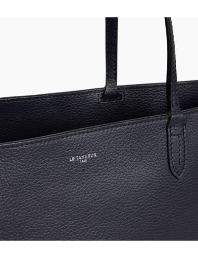 Grand sac cabas zippé en cuir grainé double face intérieur contrasté et pochette amovible. Porté épaule.