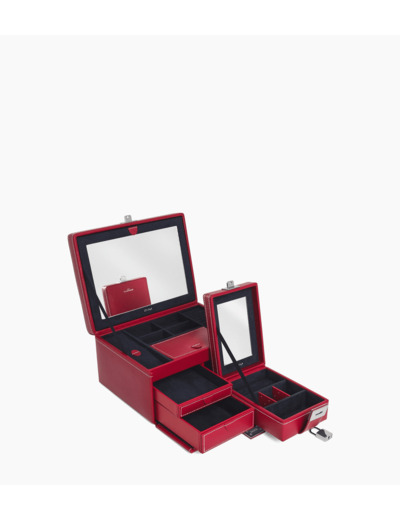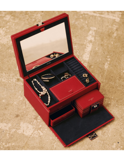 Grand boîte à bijoux possédant des compartiments amovibles. Marquage Le Tanneur et fermoir finition doré clair.