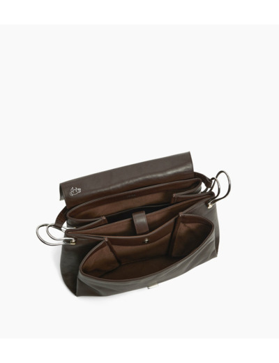 3 grands compartiments intérieurs dont 1 avec fermeture aimantée. 1 grande poche plate arrière extérieure. 1 bandoulière porté croisé ajustable et amovible.