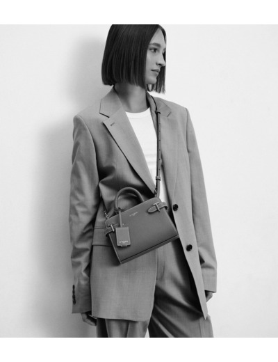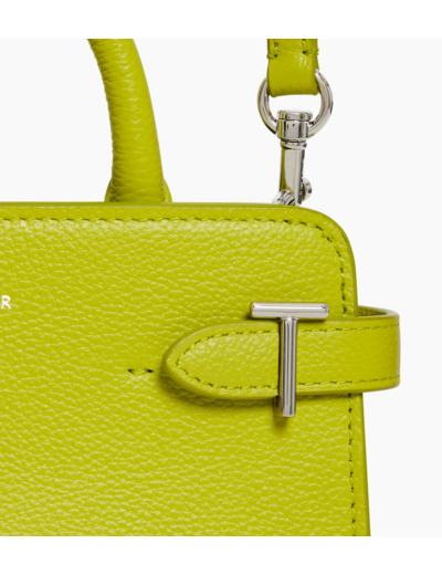 Sac à main mini modèle avec double T métallique signature et charms amovible. Marquage Le Tanneur sur film argenté clair. Porté main, épaule ou croisé grâce à sa bandoulière ajustable et amovible.