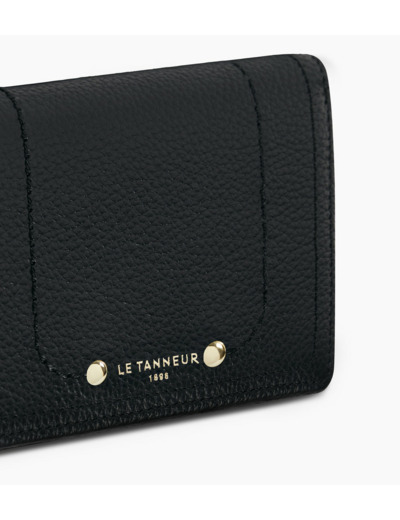 Petit portefeuille avec fermeture pression, poche monnaie zippée et marquage Le Tanneur. Dispose d'une protection RFID.