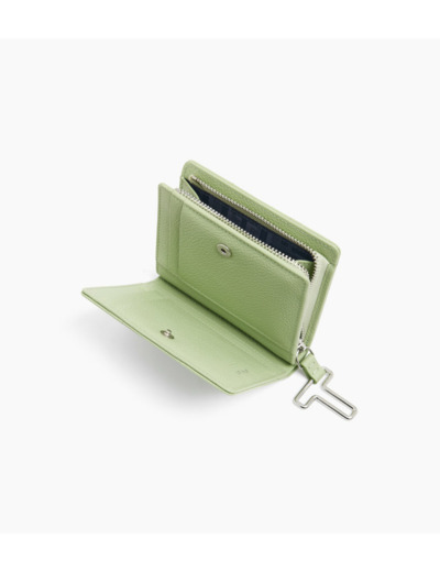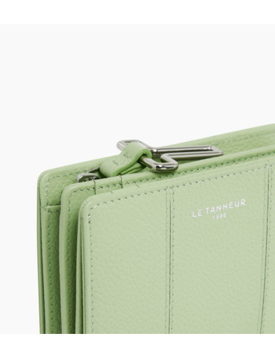 Petit portefeuille avec fermeture pression, marquage Le Tanneur et poche monnaie zip T signature.