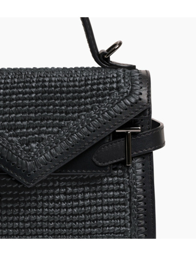 Petit sac à main avec double rabat, bijouterie T signature et marquage Le Tanneur. Porté main, épaule ou croisé grâce à sa bandoulière ajustable et amovible.