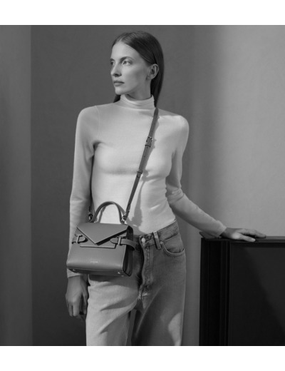 Petit sac à main avec double rabat, bijouterie T signature et marquage Le Tanneur. Porté main, épaule ou croisé grâce à sa bandoulière ajustable et amovible.