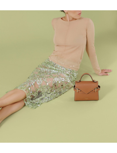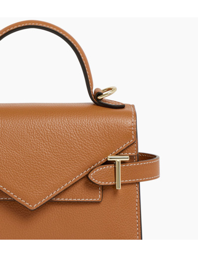 Petit sac à main avec double rabat, bijouterie T signature et marquage Le Tanneur. Porté main, épaule ou croisé grâce à sa bandoulière ajustable et amovible.