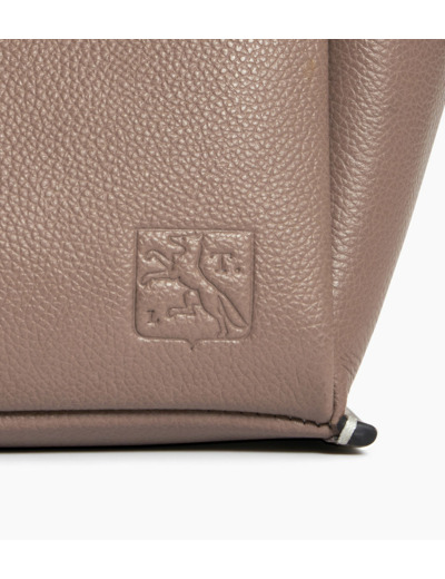 Petit sac à main avec pochette amovible, miroir de courtoisie et marquage Le Tanneur ton sur ton. Doublure suède en microfibre. Porté main ou croisé grâce à sa bandoulière ajustable et amovible.