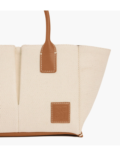 Cuir de vachette pleine fleur grainé et toile naturelle coton. Doublure suède