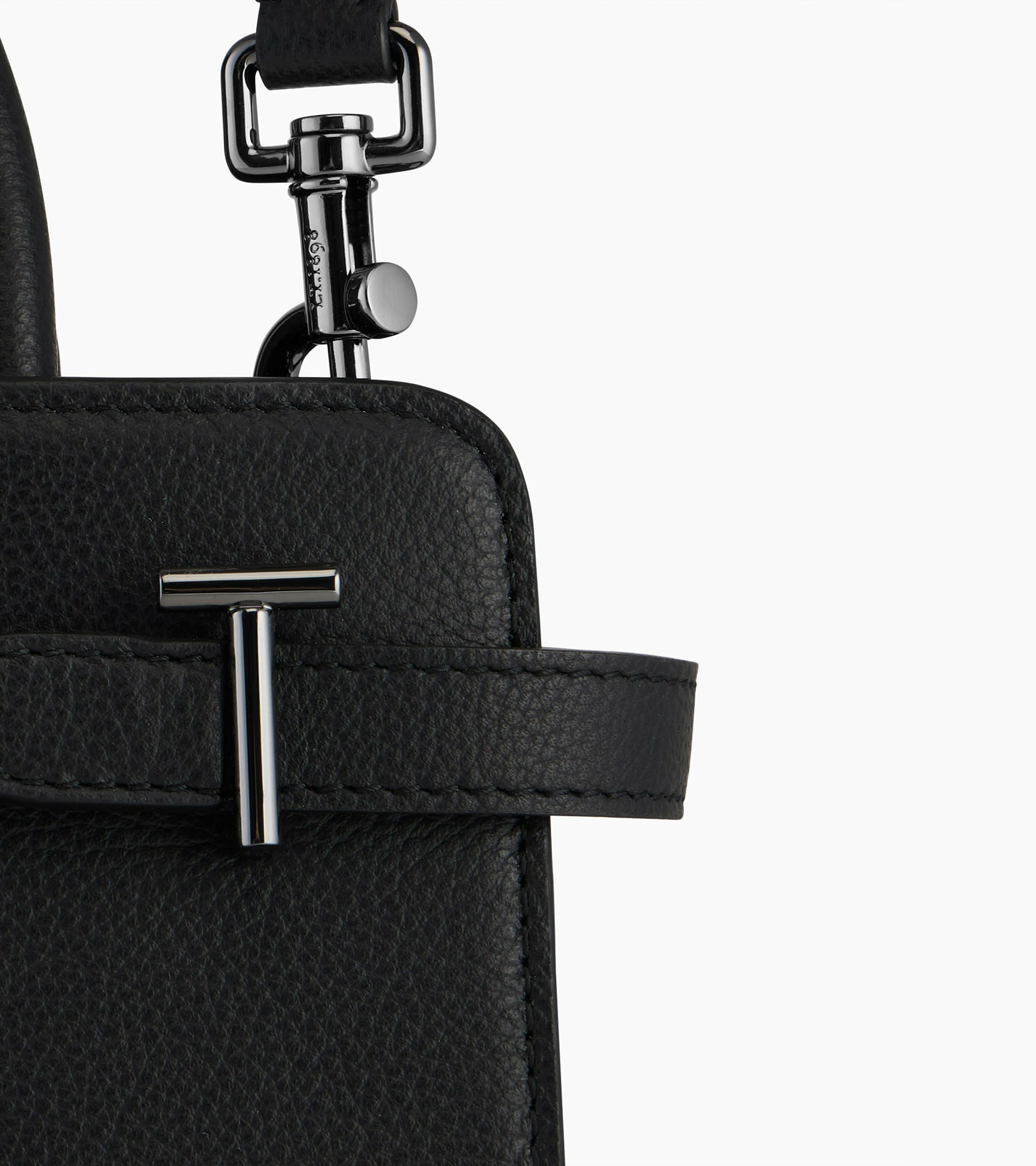 Petit sac à main avec poignées toron et trois compartiments dont un zippé. Pièces T métalliques signature de la ligne. Charms embossé Le Tanneur amovible. Porté main, épaule ou croisé grâce à sa bandoulière ajustable et amovible.
