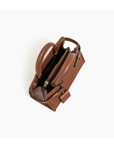 Petit sac à main avec poignées toron et trois compartiments dont un zippé. Pièces T métalliques signature de la ligne. Charms embossé Le Tanneur amovible. Porté main, épaule ou croisé grâce à sa bandoulière ajustable et amovible.