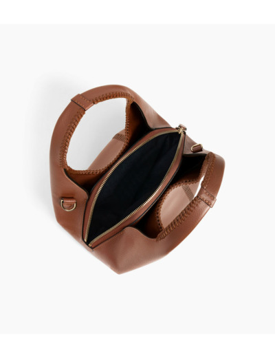 Ce petit sac à main souple, en cuir grainé avec surpiqûres, arbore un charms T finition doré clair signature de la Maison. Il se porte à la main, à l'épaule ou croisé avec sa bandoulière amovible.