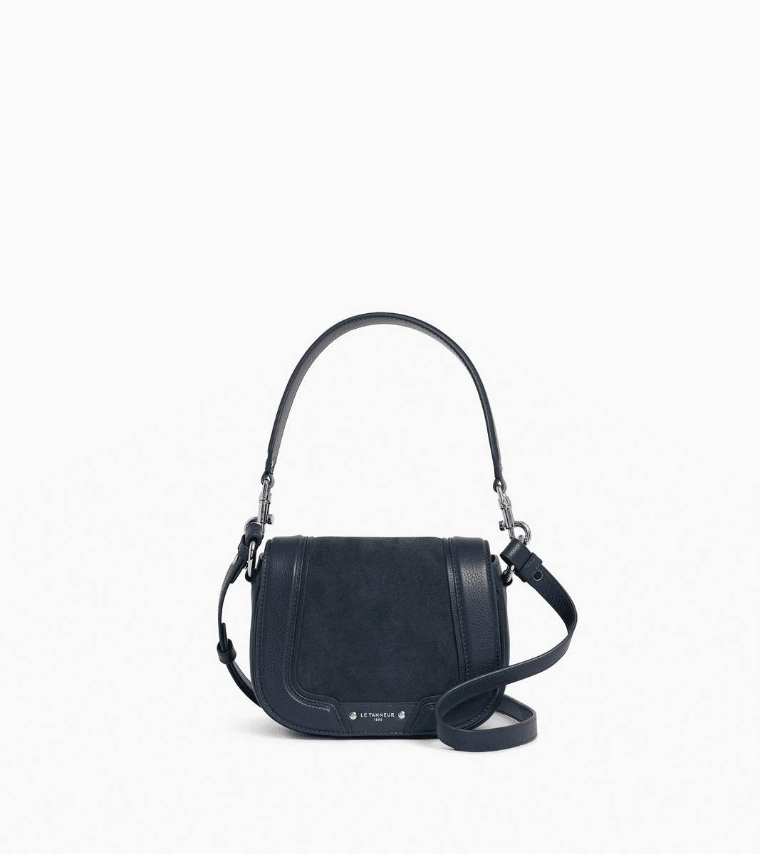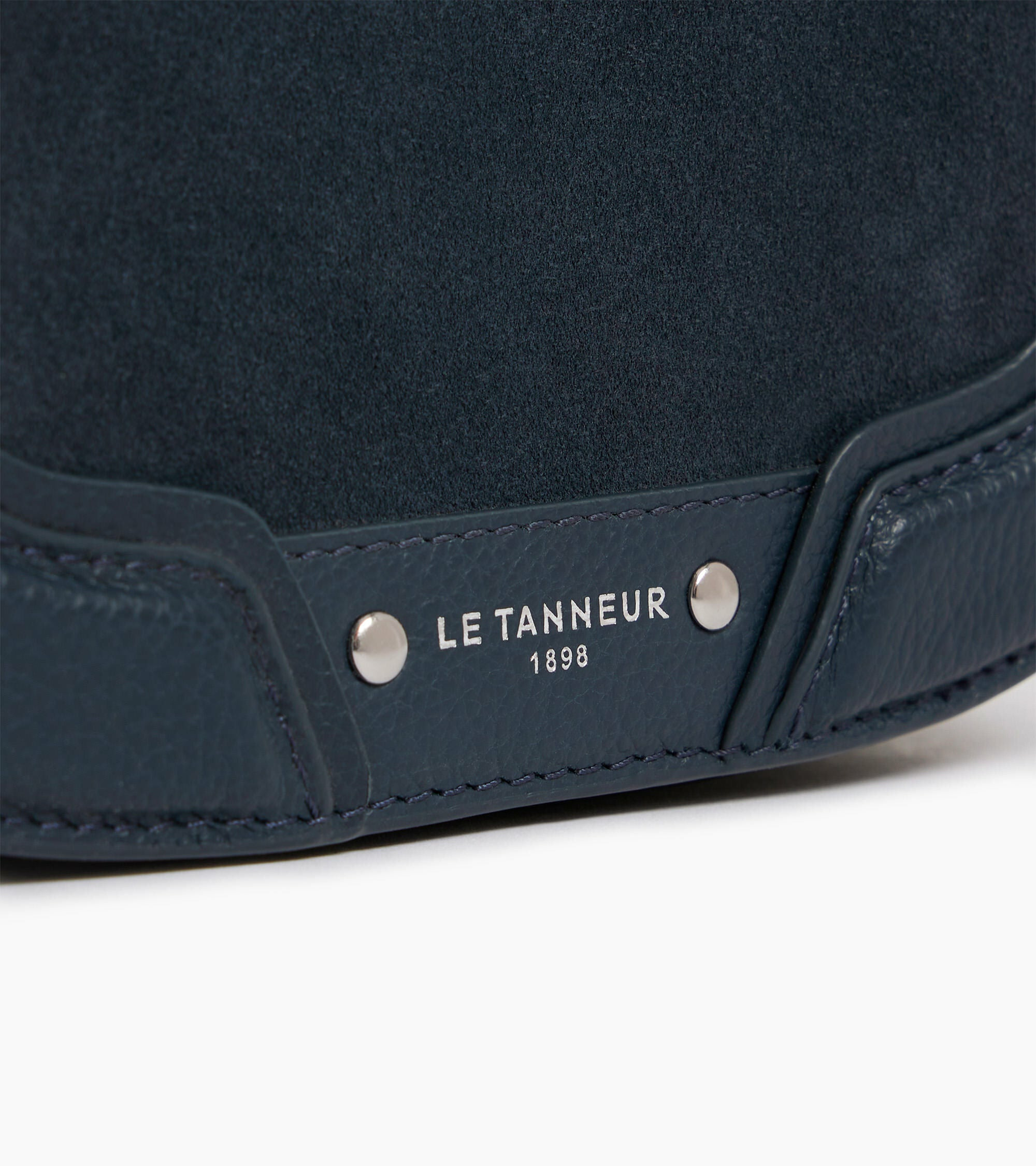 Besace petit modèle en cuir grainé et nubuck, avec fermeture aimantée, marquage Le Tanneur et intérieur jacquard anniversaire 125 ans. Porté main, croisé ou épaule grâce à sa bandoulière ajustable et sa poignée amovible ajustée au corps du sac.