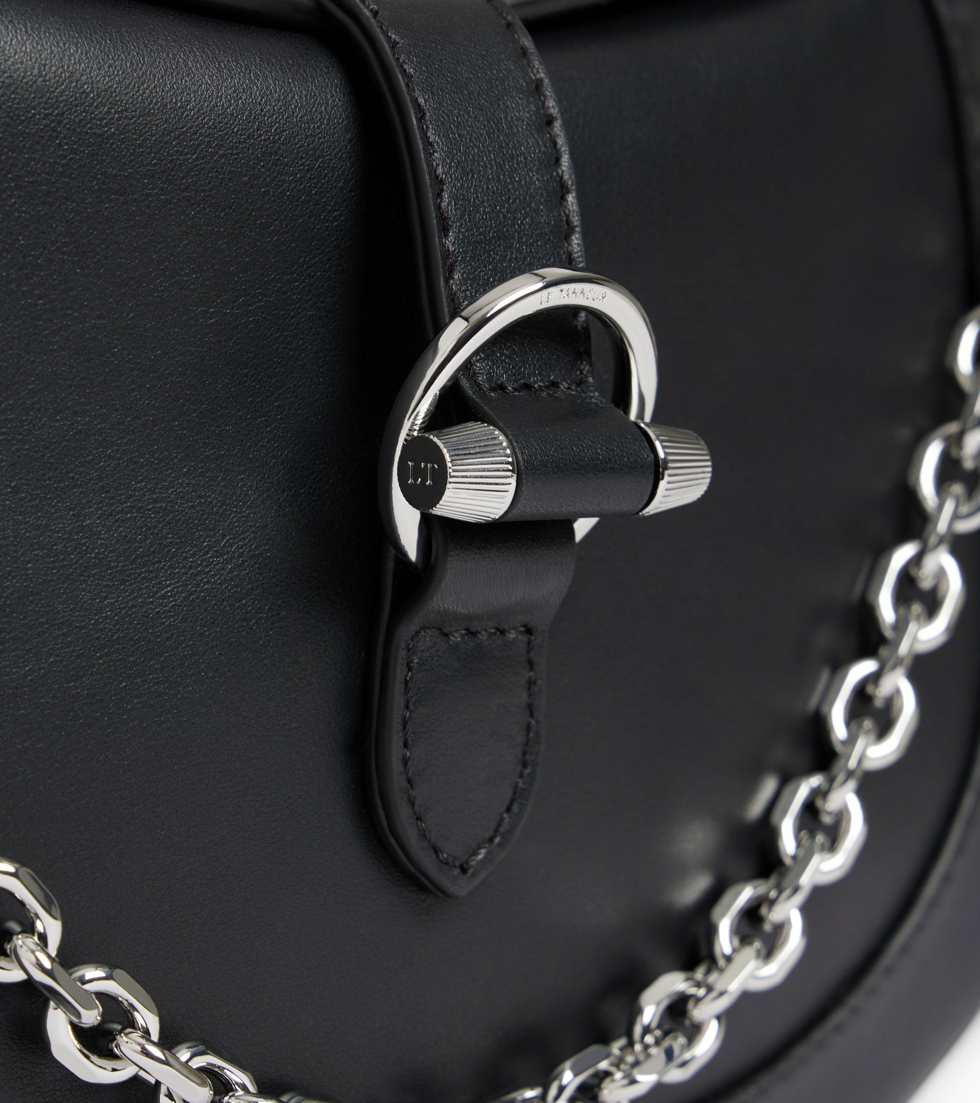 Petit sac avec fermoir signature et marquage Le Tanneur gravé. Bandoulières amovibles en cuir (ajustable) et chaine (non ajustable). Porté épaule ou croisé.