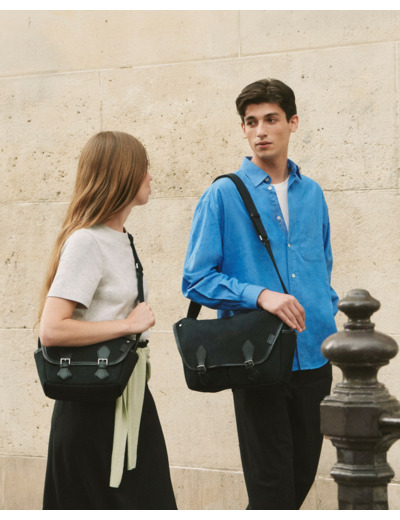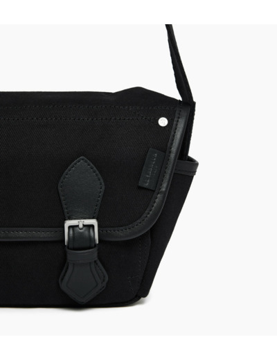 Petit sac bandoulière en toile et cuir avec marquage Le Tanneur ton sur ton, doublure 100% coton et bouclerie finition argent brossé. Porté épaule ou croisé grâce à sa bandoulière ajustable.