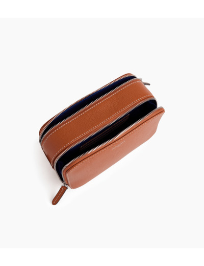 Cuir de vachette pleine fleur grainé. Doublure textile le Bleu.