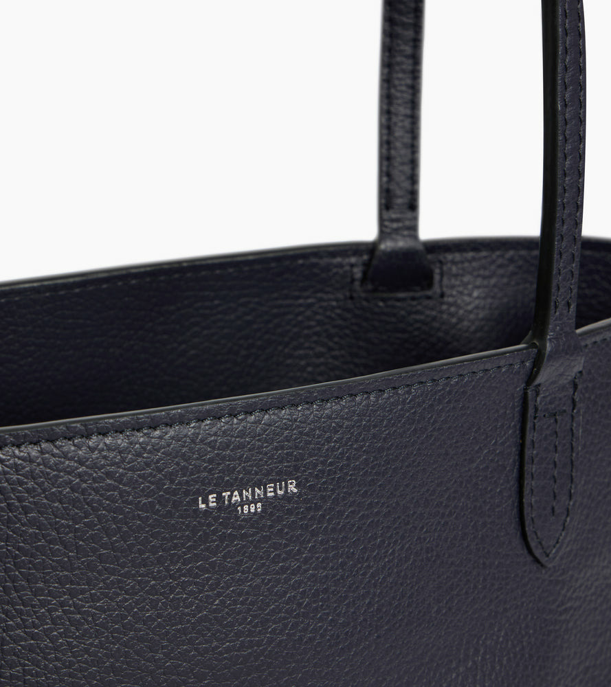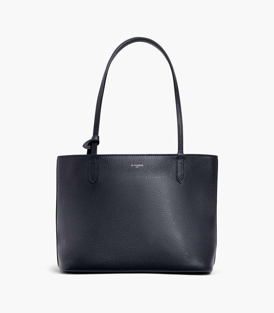 Petit sac cabas zippé en cuir grainé double face intérieur contrasté et pochette amovible. Porté épaule.