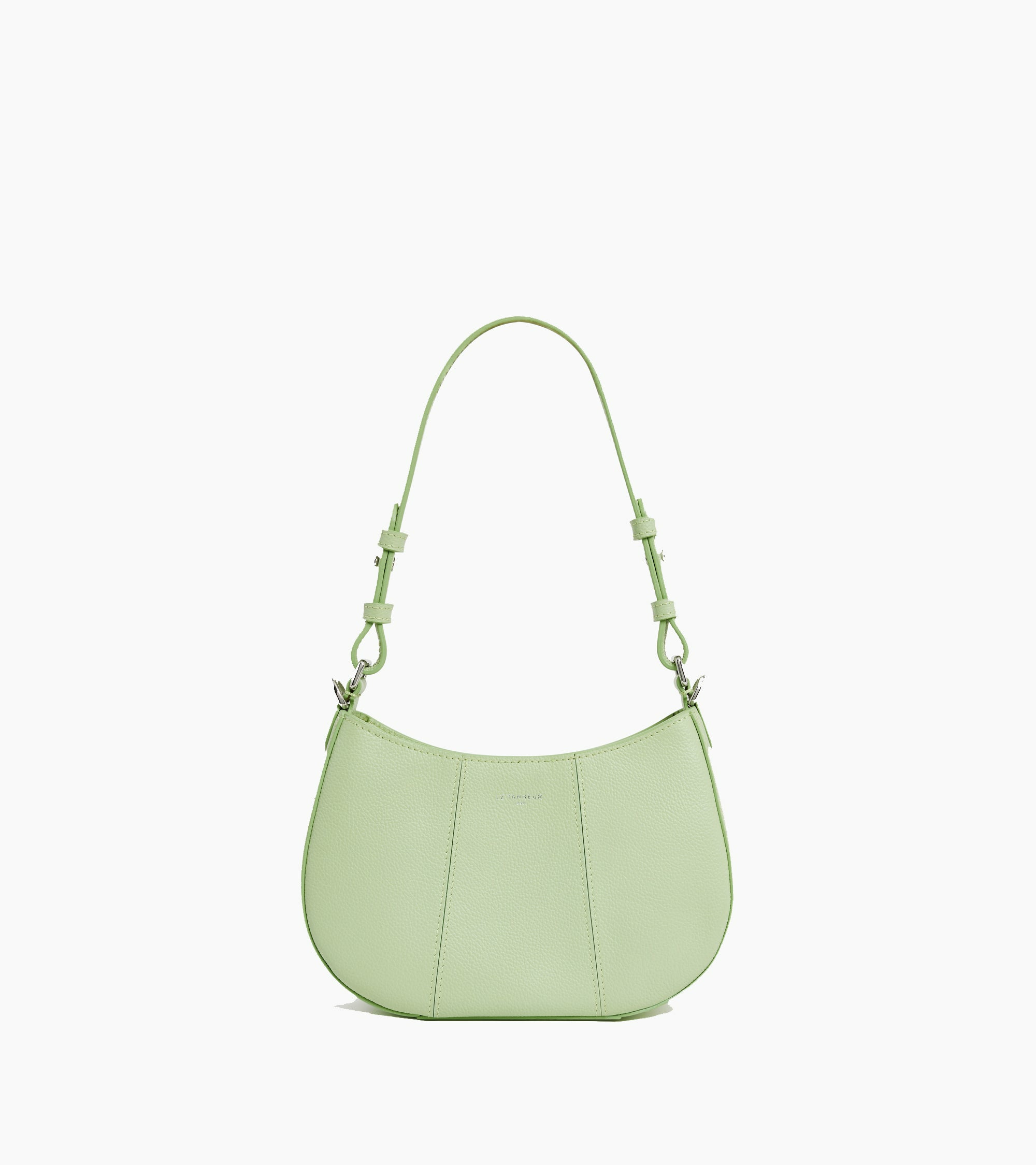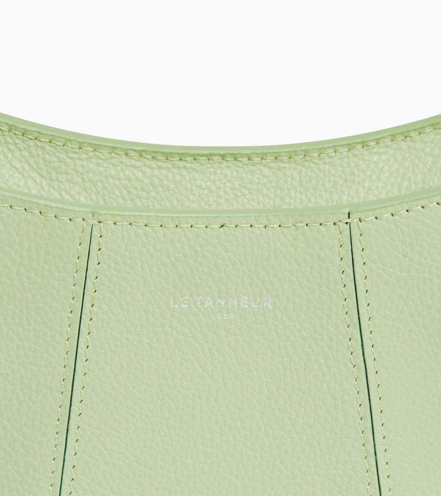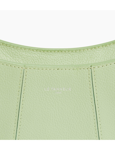 Petit sac demilune avec doublure jacquard crépuscule et marquage Le Tanneur. Double porté grâce à sa mini bandoulière porté épaule amovible et sa bandoulière porté croisé ajustable et amovible.