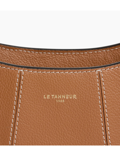 Petit sac demi-lune avec doublure jacquard crépuscule et marquage Le Tanneur. Double porté grâce à sa mini bandoulière porté épaule amovible et sa bandoulière porté croisé ajustable et amovible.