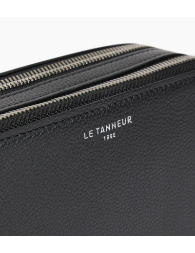 Sacoche portefeuille zippée avec bandoulière ajustable et amovible. Zip et marquage Le Tanneur finition argent.