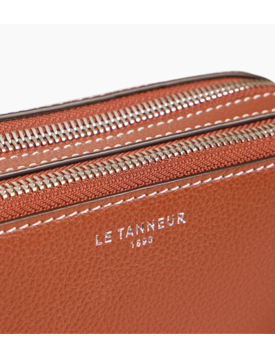 Sacoche portefeuille zippée avec bandoulière ajustable et amovible. Zip et marquage Le Tanneur finition argent.