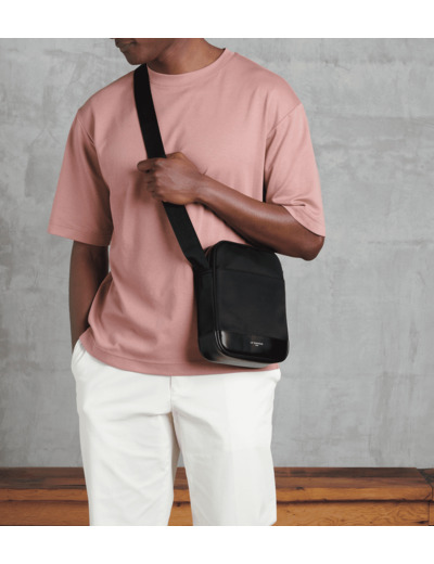 1 poche moussée, 1 poche plate avant. Bandoulière ajustable.