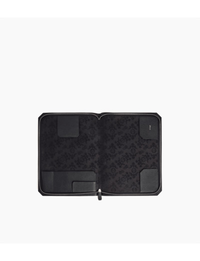Pochette bureau mobile avec intérieur jacquard anniversaire 125 ans et emplacement ordinateur 13. Marquage Le Tanneur et éléments métalliques finition argent."