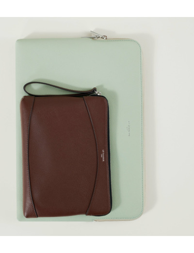 Pochette zippée avec dragonne amovible, marquage et bouclerie finition argent. Doublure : 100% coton Crépuscule.
