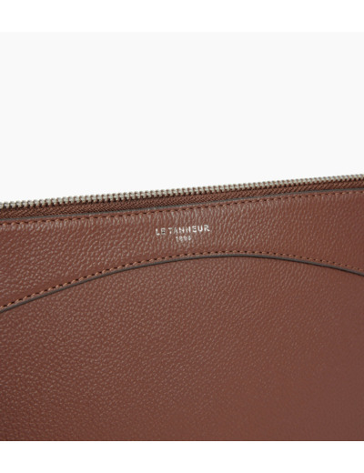 Cuir de vachette pleine fleur grainé. Doublure coton bleu marine