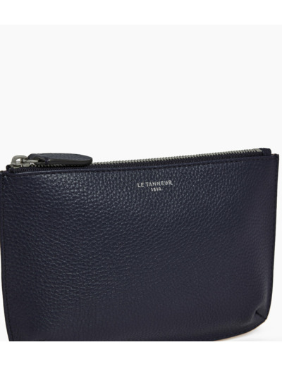 Pochette zippée petit modèle en cuir avec marquage Le Tanneur.