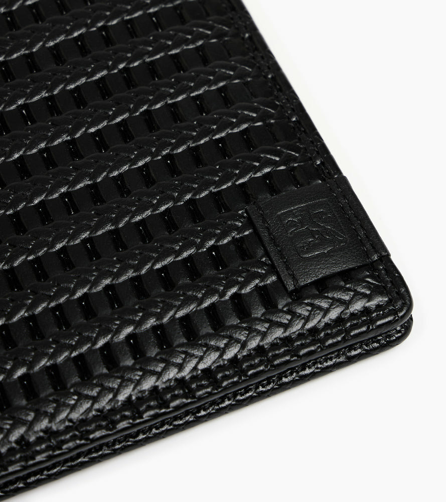 Porte-cartes horizontal deux volets avec marquage Le Tanneur ton sur ton et sécurité anti-RFID.