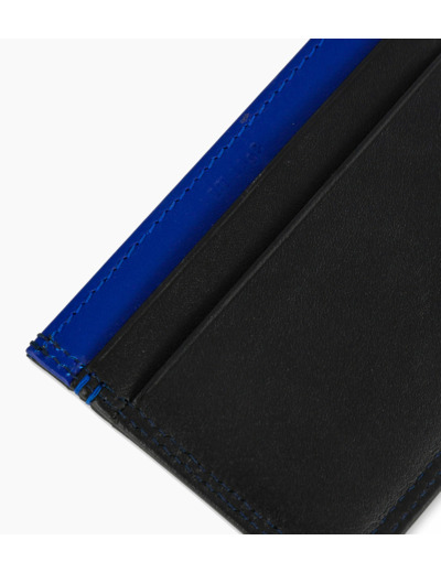 Ce porte-cartes arbore un discret marquage Le Tanneur couleur Le Bleu, ainsi qu’un double point du même contraste cousu à la main.