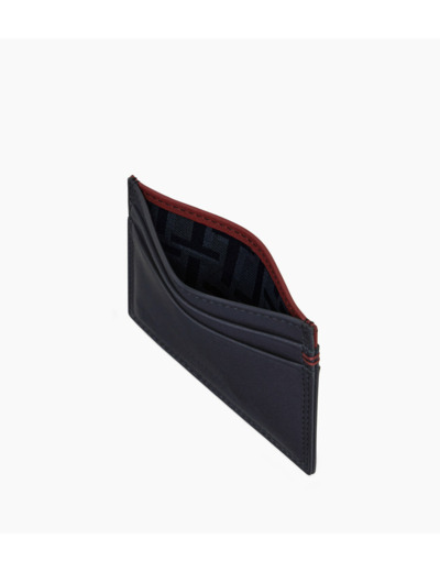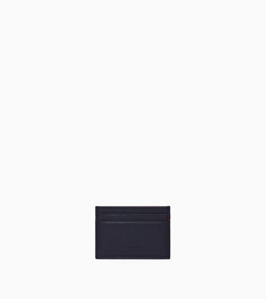 Ce porte-cartes arbore un discret marquage Le Tanneur couleur Le Bleu, ainsi qu’un double point du même contraste cousu à la main.
