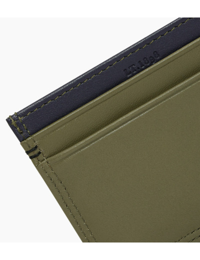 Ce porte-cartes arbore un discret marquage Le Tanneur couleur Le Bleu, ainsi qu’un double point du même contraste cousu à la main.